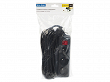 Przedłużacz elektryczny 5 metrowy w kolorze czarnym zakończona trzema gniazdami z uziemieniem i podświetlanym wyłącznikiem.